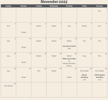 1900 E Howard Ln Suite A7 | Pflugerville, Texas 78660 | rachel@yarningfiberarts.com | (512) 766-9298