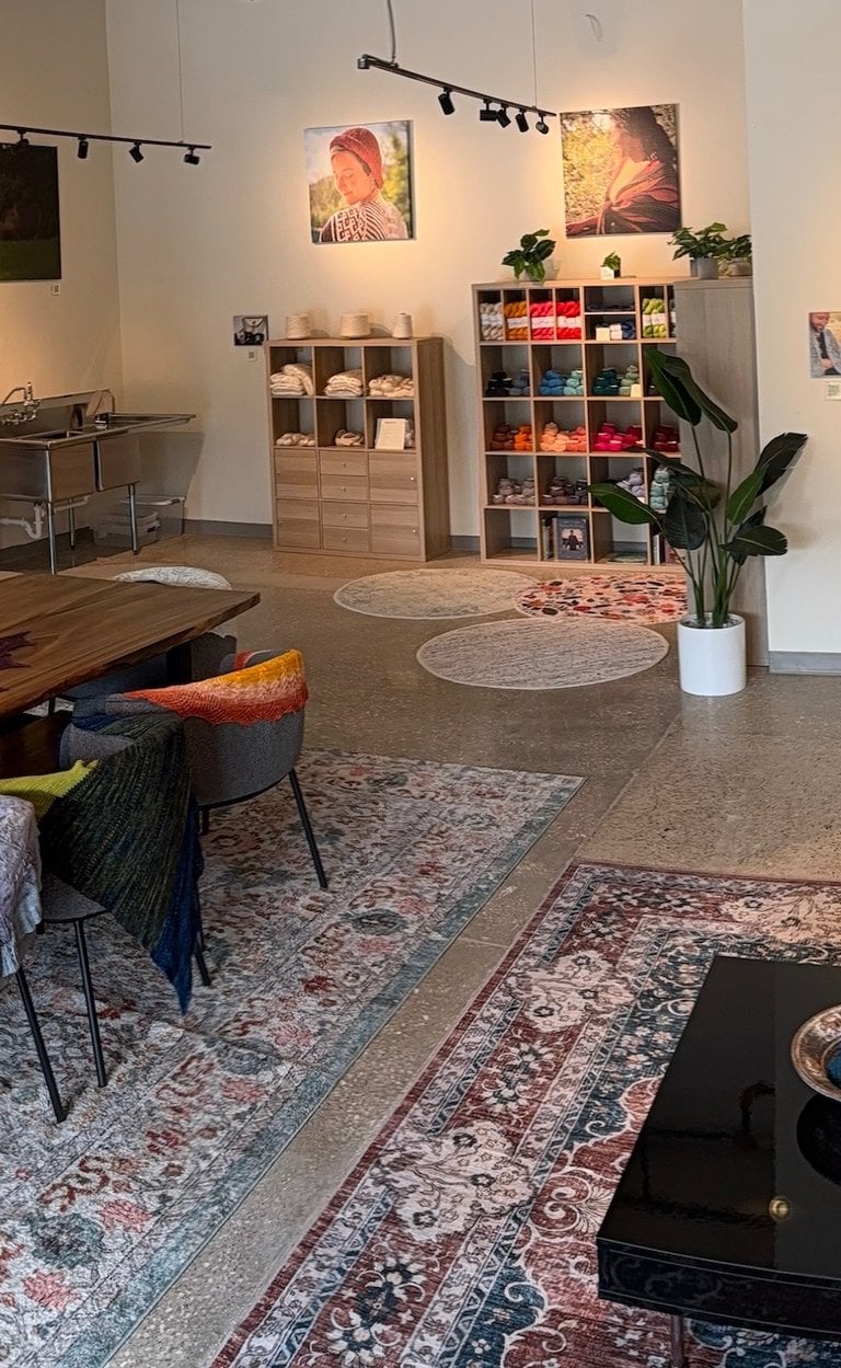 Discover the art of mindful making in our welcoming studio. Bring your vision to life: pick from our luxurious yarn bases and get help dyeing the colorway of your dreams, or browse our curated selection of yarn.