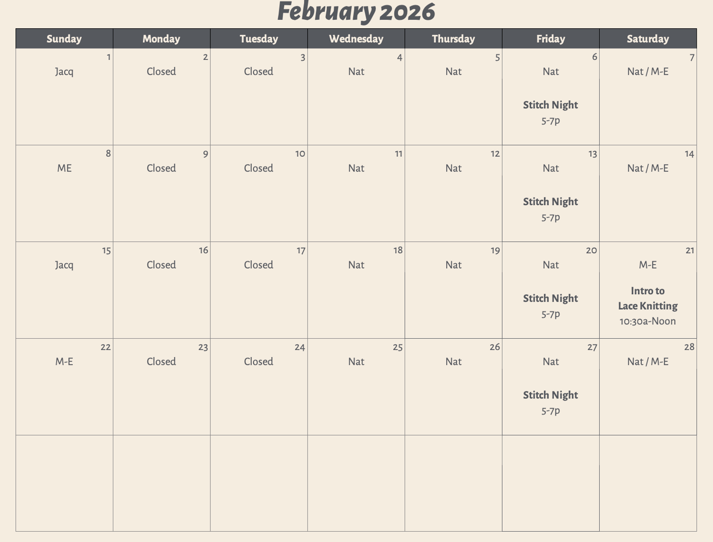 Rachel is the owner of Yarning Fiber Arts. She taught herself how to knit in 2001 and has averaged several hours of knitting every day since 2018. Though she is accomplished in many kinds of knitting, her favorite is lace shawls--the more intricate, the better! Knitting is a spiritual practice for her and has brought her infinite peace and joy. She would be honored to share the practice with you and is eager to support you in your fiber arts journey. Rachel is grateful beyond words to have the passion and the means to bring Yarning to life...thank you for your part in it!