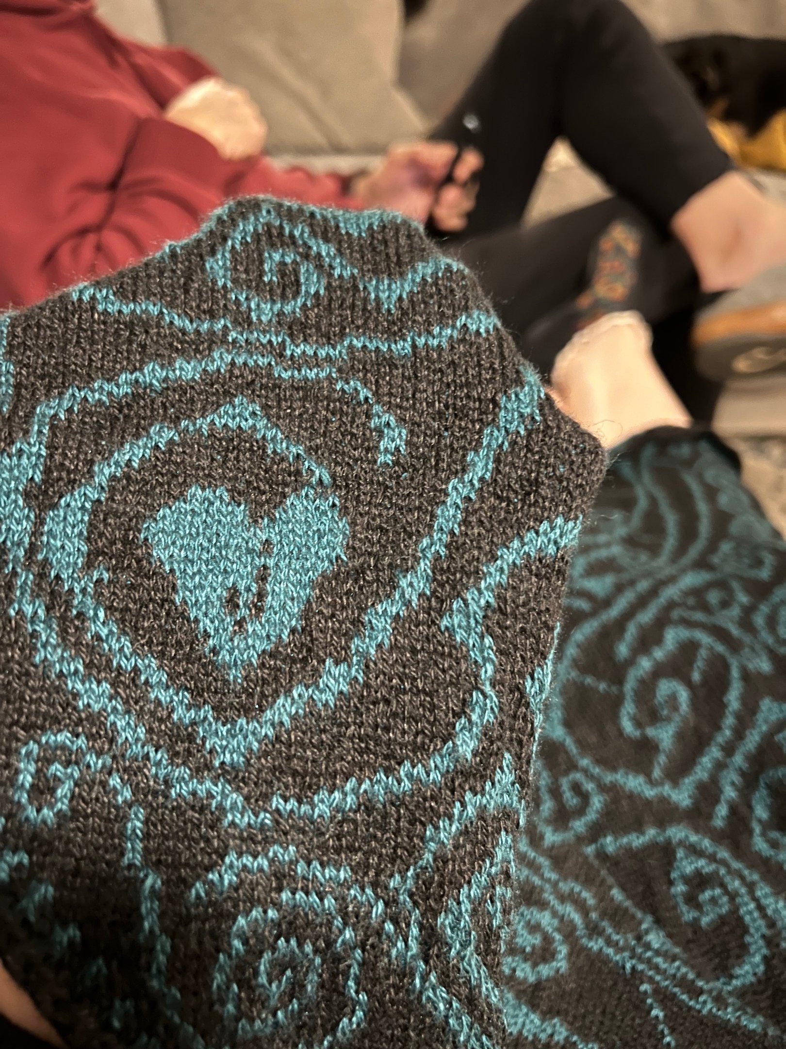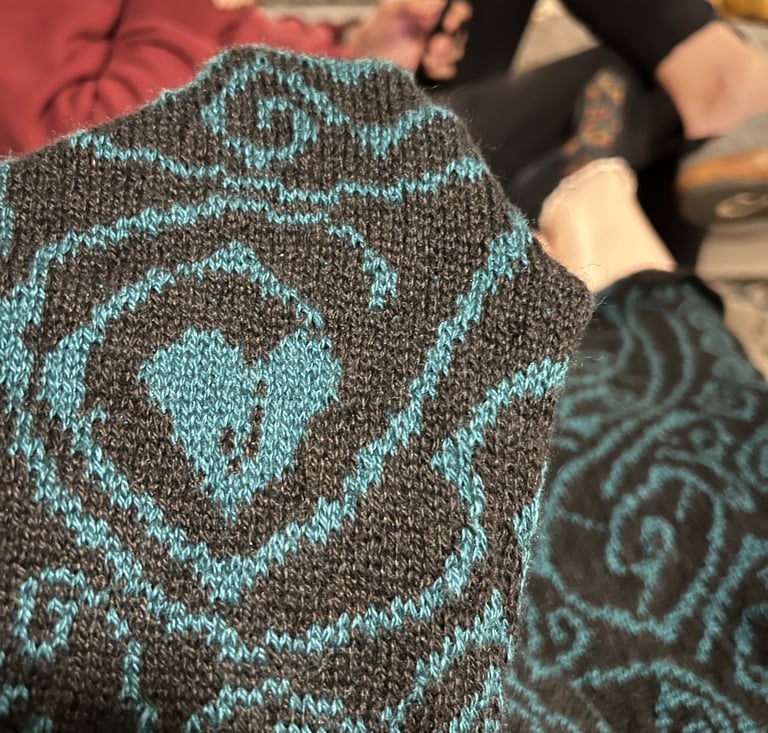 This woman is syrup, velvet, and candlelight. Her shawl called for a blend of silk and cashmere and a custom design. Hours and hours of knitting with size 1 needles and counting stitches...careful work, but also luxurious.